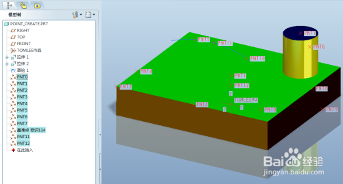 - 在拉伸等特征建立过程中,若是需要,随时可以启动点的建立来辅助完当作当前特征的建立。