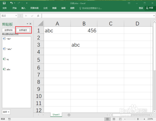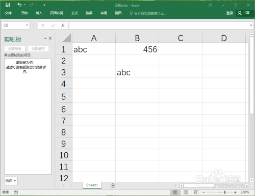 ●鼠标点击剪贴板中的“abc”,即可将“abc”复制到“B3”单位格。