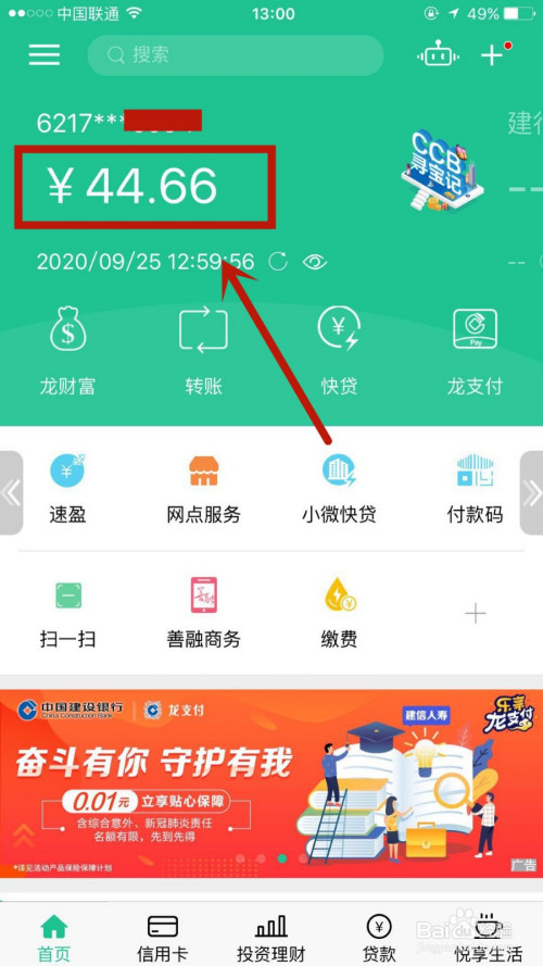 1.打开建行,点击页面余额。