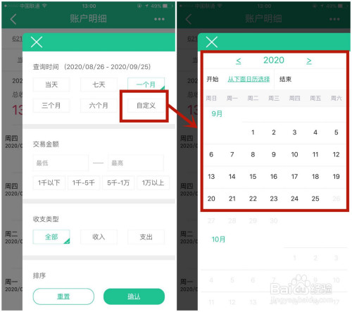 点击自界说,在日历表上选上本身要查看的时候段。