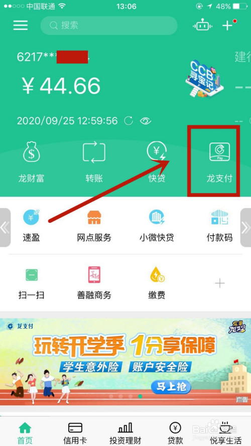 进入首页后,点击进入龙支付选项。