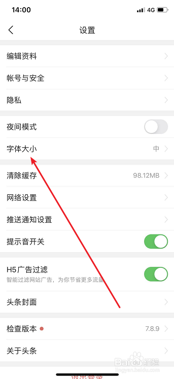 点击打开【字体大小】
