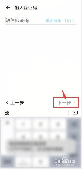 输入手机验证码点击【下一步】。