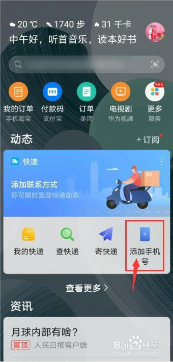 6、再次返回到负一屏就可以及时看到快递包裹动态。