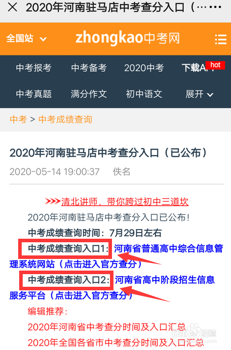 4、选择一个中考绩绩查询进口,进入查询即可。