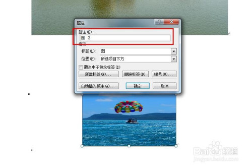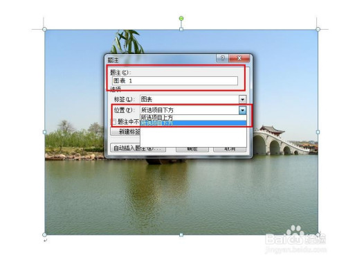 在题注对话框中,题注主动设置为图表1,选择题注地点位置。