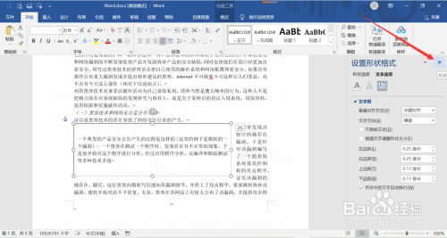 第一步:选定【文本框】,点击鼠标右键,点击【设置外形格局】