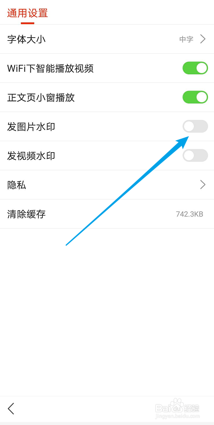 ③点击【通用设置】,勾选【发图片水印】即可完当作操作。