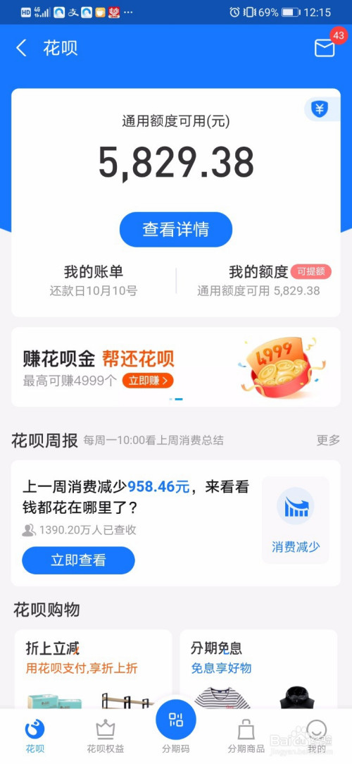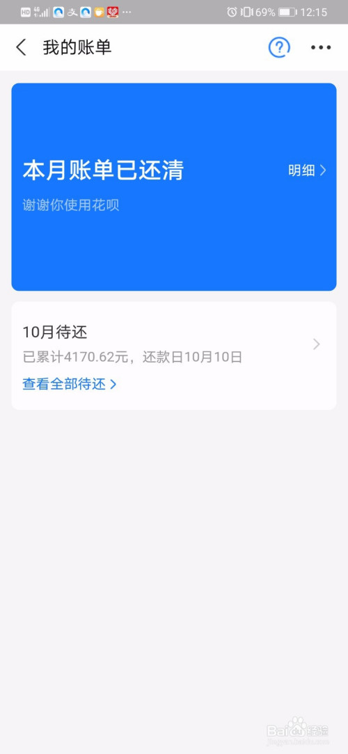 看到额度之后,我们点击一下金额下面的我的账单,这个账单就可以查看我们当前月份的应还金额。