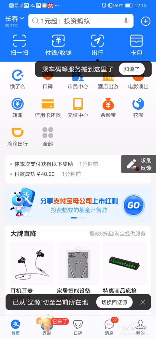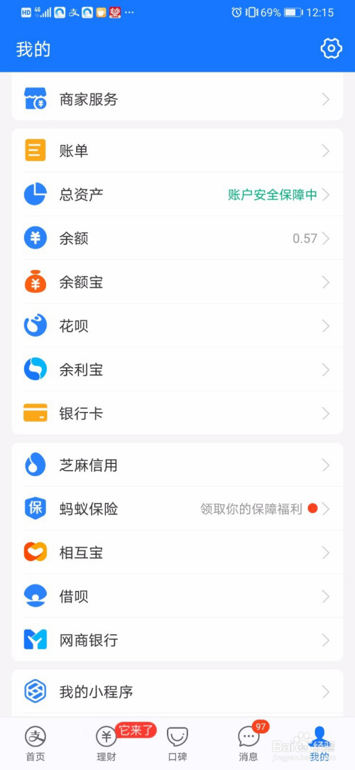 这样,验证之后,就进入到了支付宝的本家儿界面,在这里,我们点击一下右下角的我的选项。