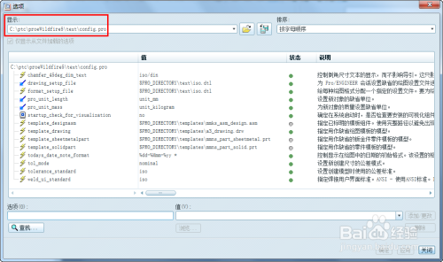 proe的config选项设置装备摆设进口:
