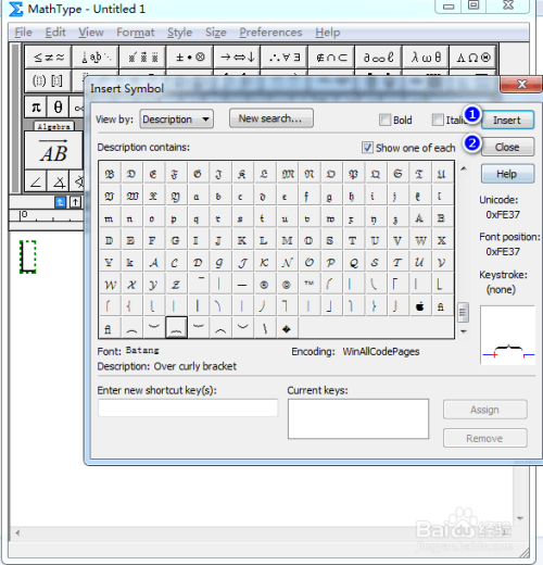 在符号面板中,找到并点中标的目的上竖大括号,具体如图所示: