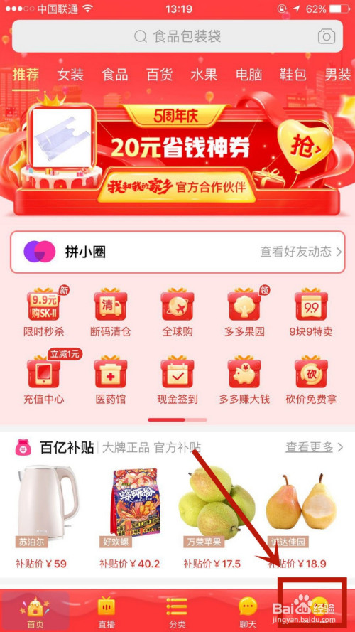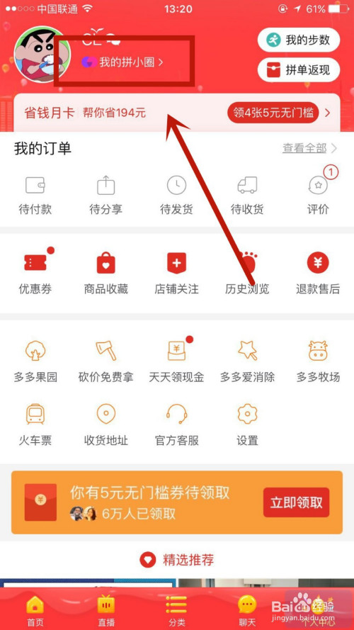进入小我拼小圈页面后,点击右上角的编纂小标。