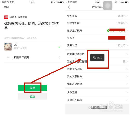 4.在链接页面点击赞成,即可显示出同步当作功的字样。