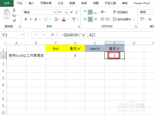 设置完当作后,可以获得字符“e”地点的位置为3,具体如图所示: