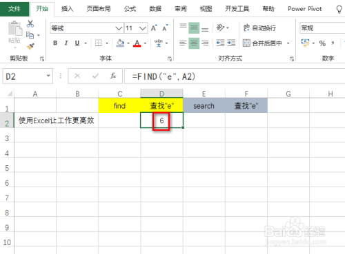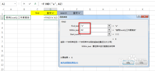 设置完当作后,可以获得字符“e”地点的位置为6,具体如图所示: