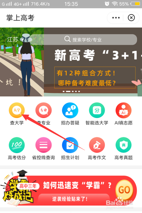 在掌上高考办事里点击查大学。