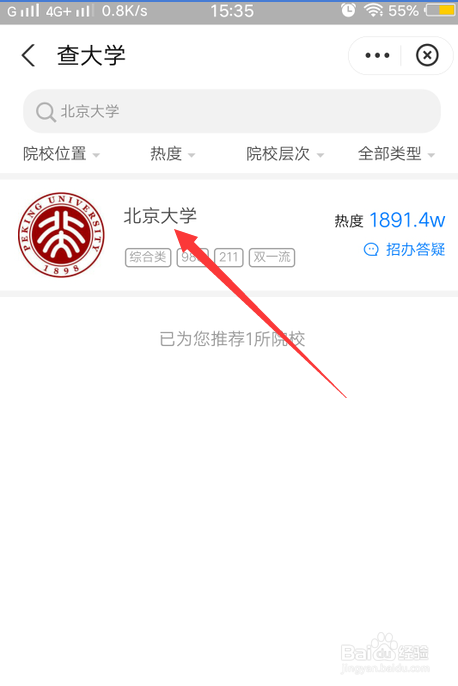 3、搜刮您被登科的大学,点击进入。