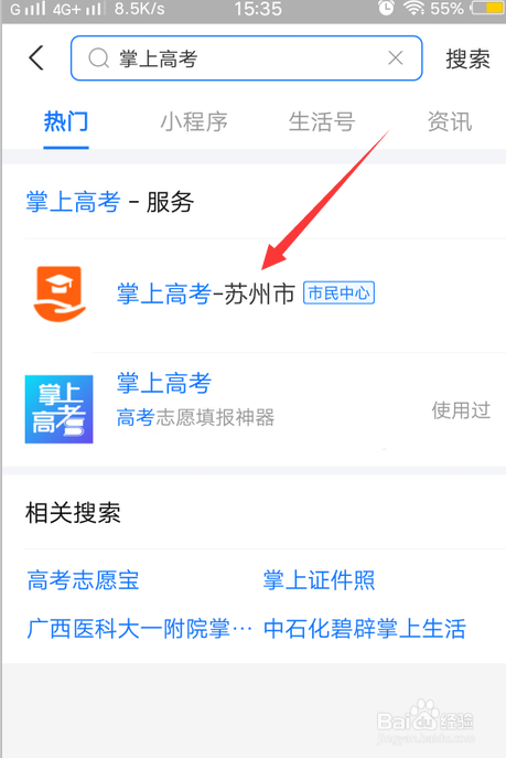 1、打开支付宝,搜刮掌上高考。