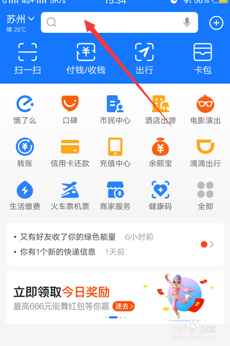 打开支付宝,点击上方的搜刮栏。