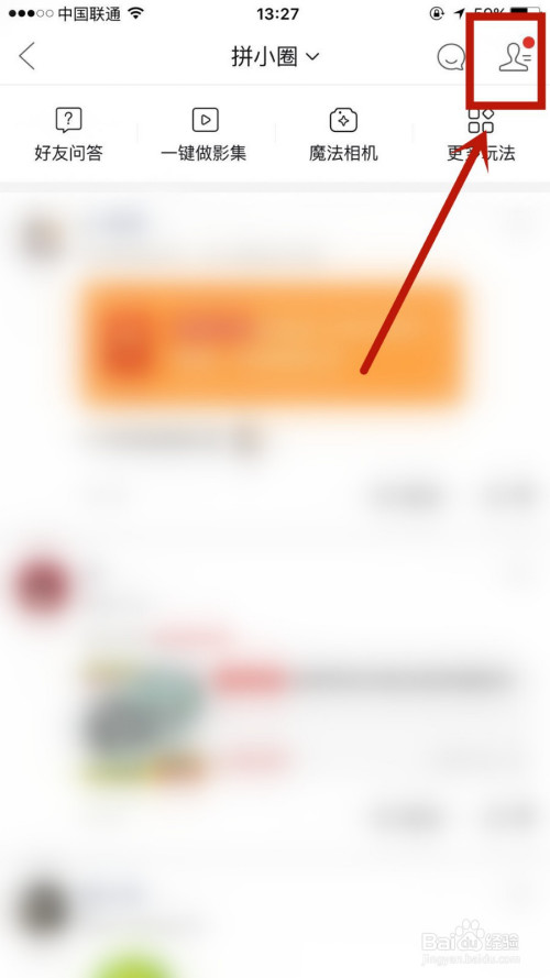 2.点击右上角的人物小标,再点击我收到的老友申请。