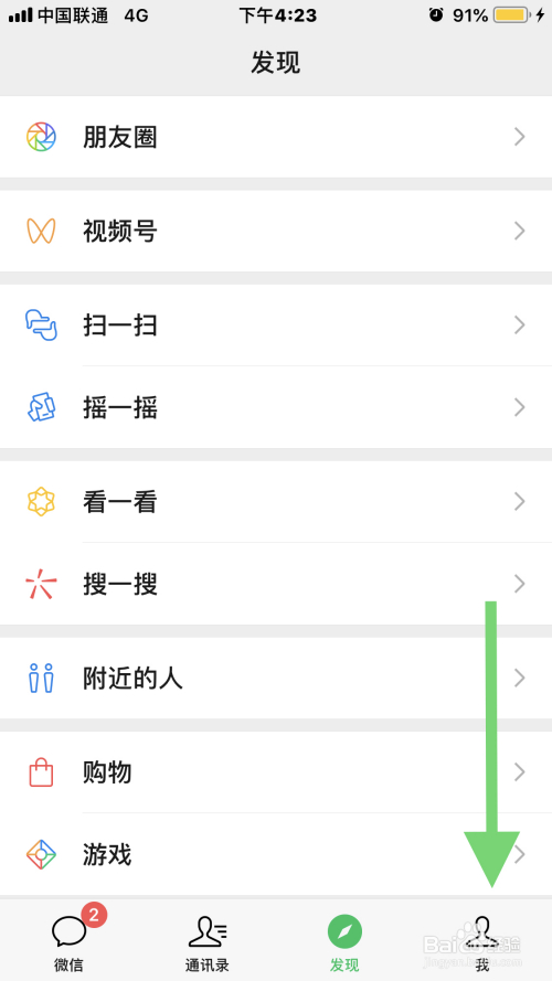 2.然后,在微信界面的右下角点击我的按钮