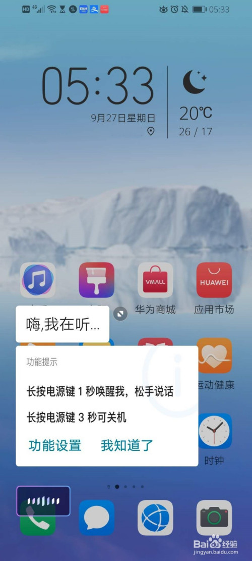长按电源键1秒钟,即可叫醒语音助手,如下图所示。