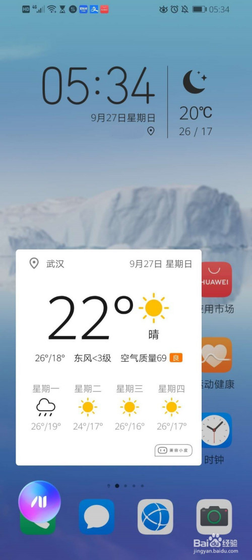 屏幕上会显示当前城市的气候预告,同时语音助手会播报此时的气候环境。