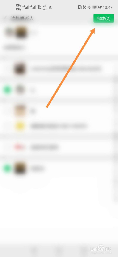 从通信录中添加屏障人员后,点击【完当作】