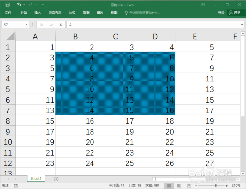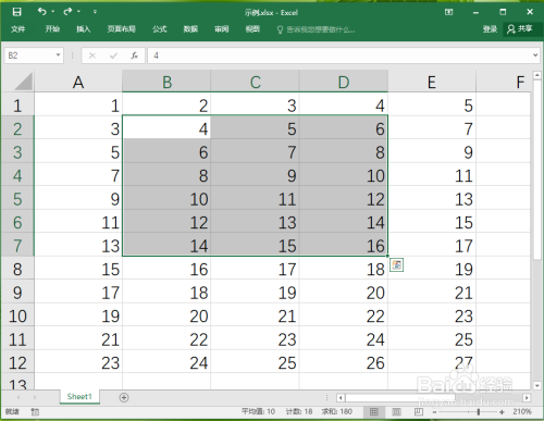 选摘要设置底纹的单位格,例如“B2:D7”,如下图所示。