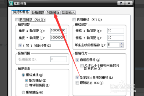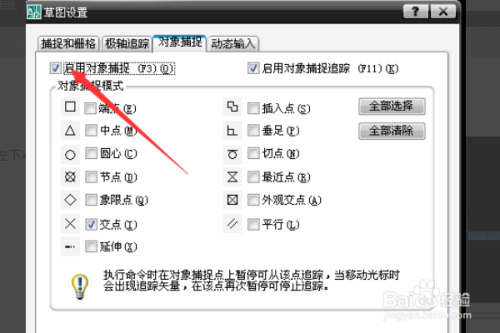 打开的CAD捕获选项。