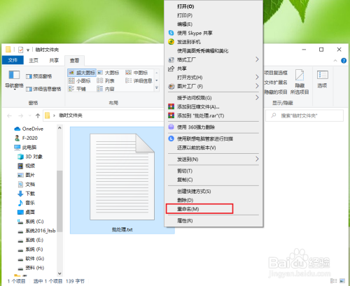 右键点击“批处置.txt”,在弹出的菜单中点击【重定名】。