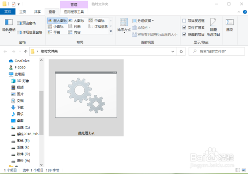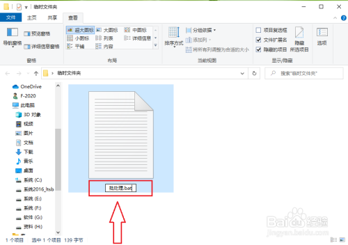 ●找到需要点窜扩展名的文件,例如“批处置”;