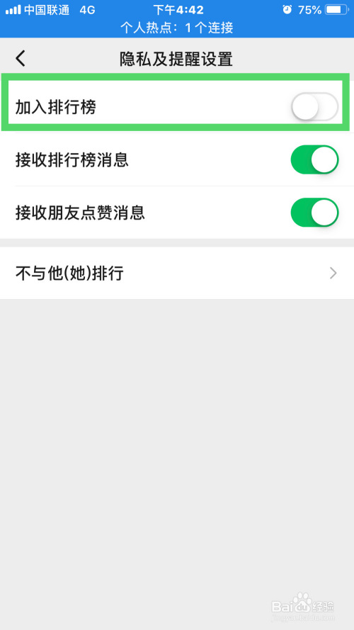 7.最后,在隐私及提醒设置界面封闭插手排行榜按钮