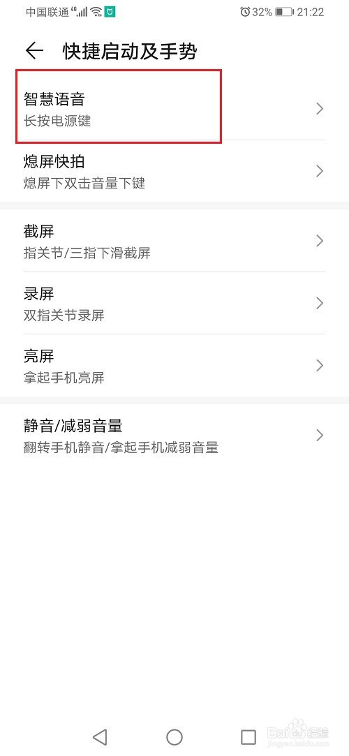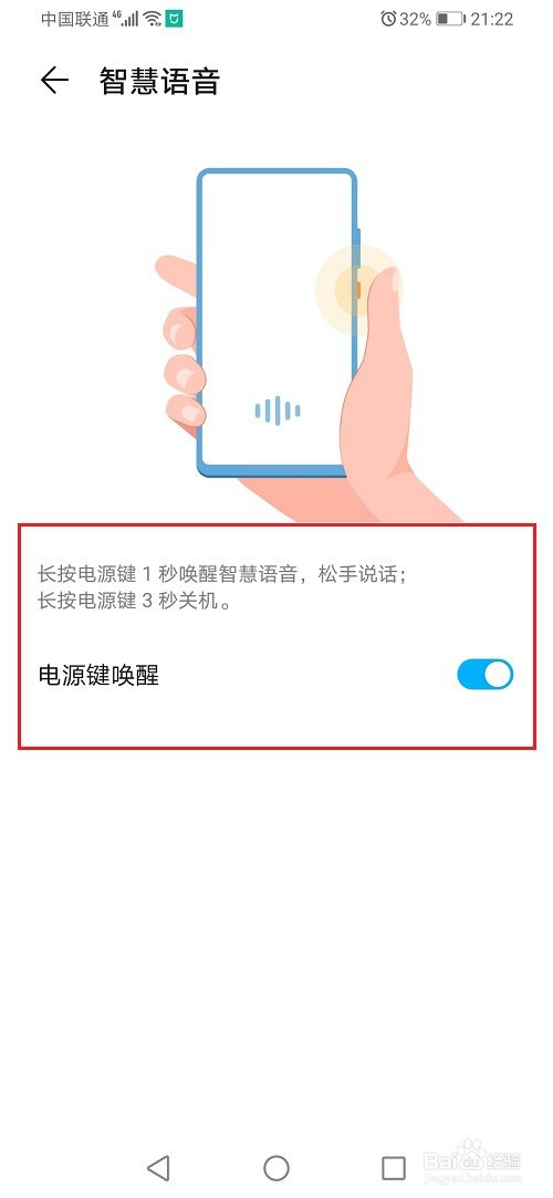 第五步进去聪明语音界面之后,开启电源键叫醒,就设置华为手机长按电源键叫醒聪明语音了,按照需要设置