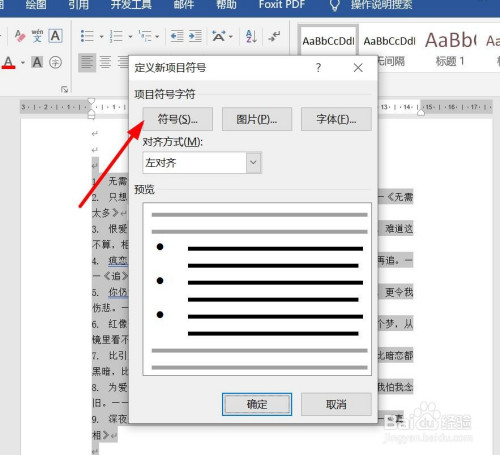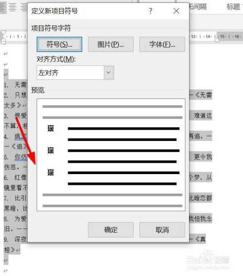 预览项目符号,然后点击确定。