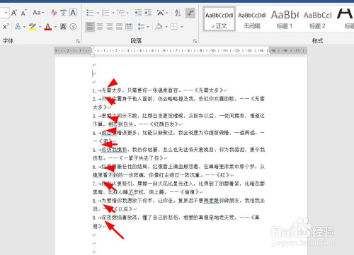 打开word文档。可以看到复制的文本中,编号旁边带有多个箭头,怎么都消弭不了。