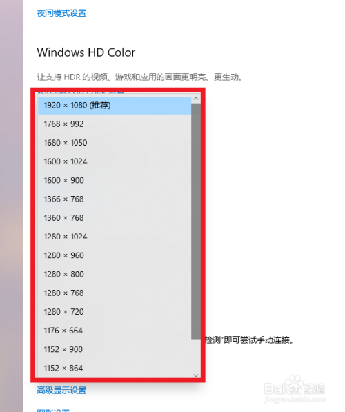 如图,在此页面选择您需要的屏幕分辩率即可。