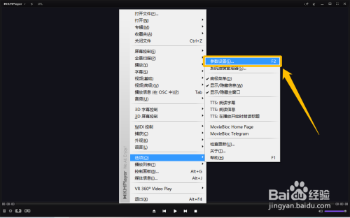在“KMPlayer”本家儿界面中,在肆意空白区域中单击鼠标右键,在睁开的下拉框中选择“选项(O) > 参数设置(E)...”选项。