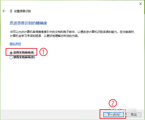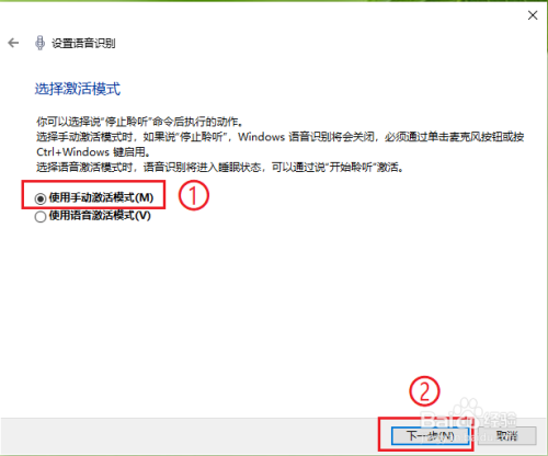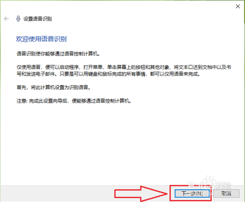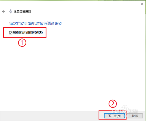 勾选【启动时运行语音识别】,然后点击【下一步】。