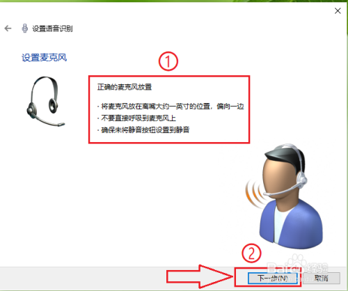 准确的放置好麦克风,然后点击【下一步】。