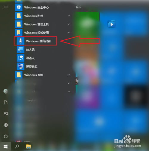 在应用列表中找到“windows 轻松利用”,然后点击,在睁开的列表中点击【Windows 语音识别】即可打开语音识别。