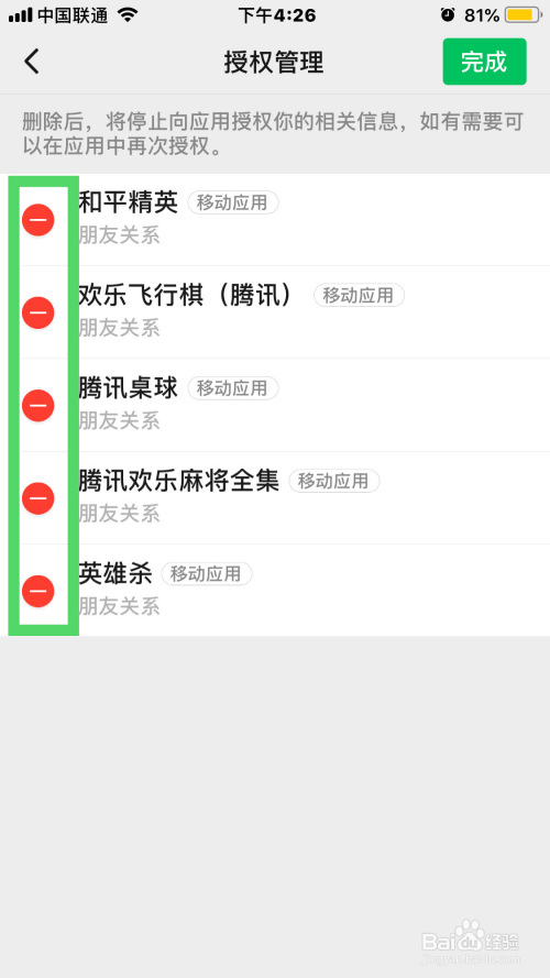 6.最后,在授权办理界面选择打消联系关系的游戏就可以啦