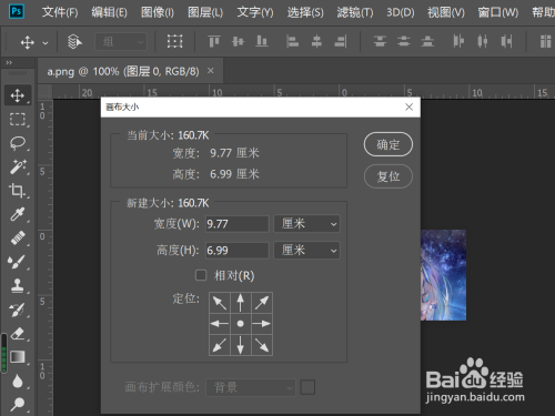 找到编纂里的“画布大小”,恰当增大画布的长宽比例;