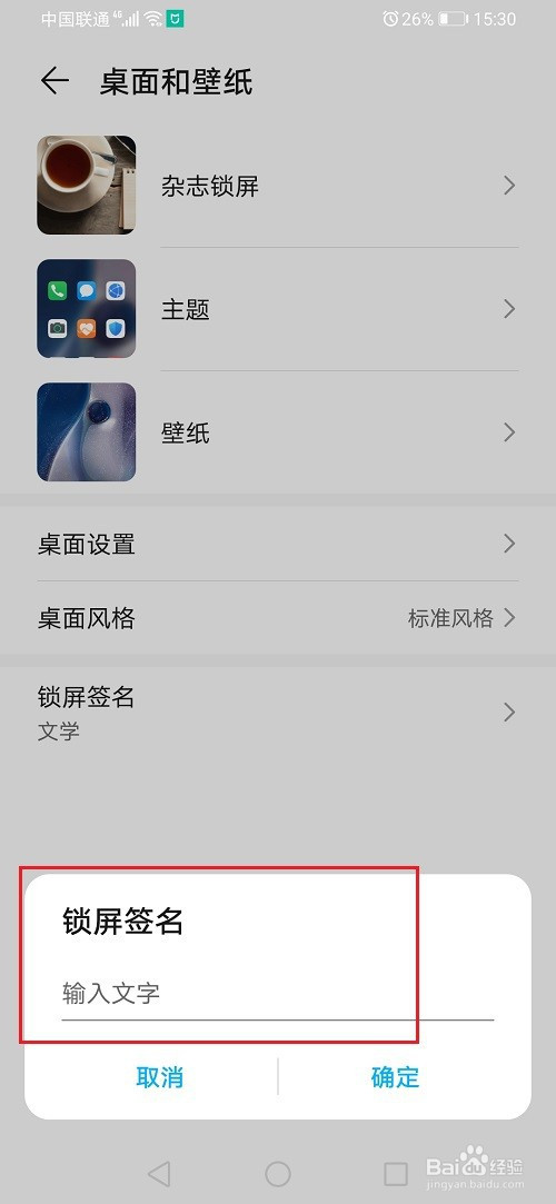 第三步进去桌面和壁纸之后,点击锁屏签名
