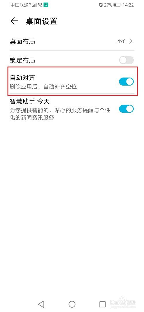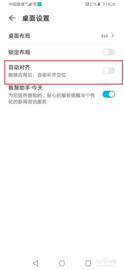 第五步开启之后,就设置华为手机桌面图标主动对齐了
