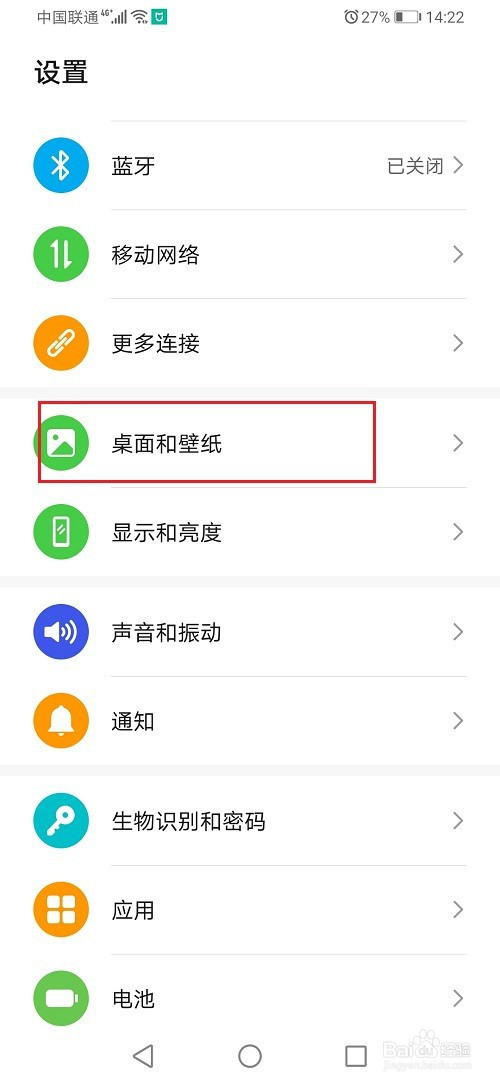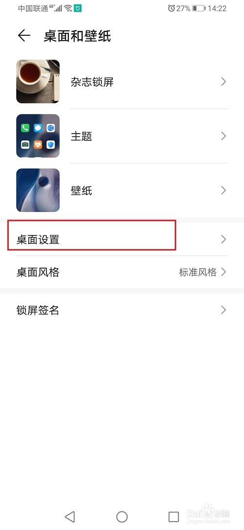 第二步进去华为手机设置之后,点击桌面和壁纸
