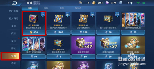 若是在【热点保举】没有看到宝箱,可以去【特惠】的【热卖】里找,第一个物品就是金币宝箱。