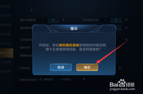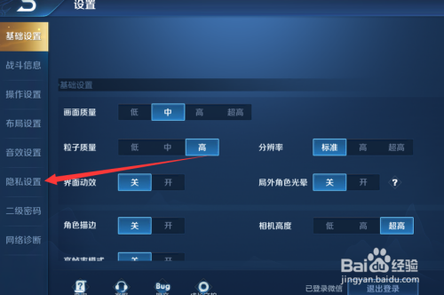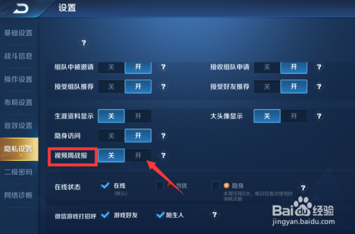 2、选择隐私设置,找到视频周战报。