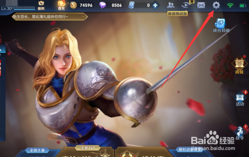 1、打开王者荣耀,点击右上方的设置。